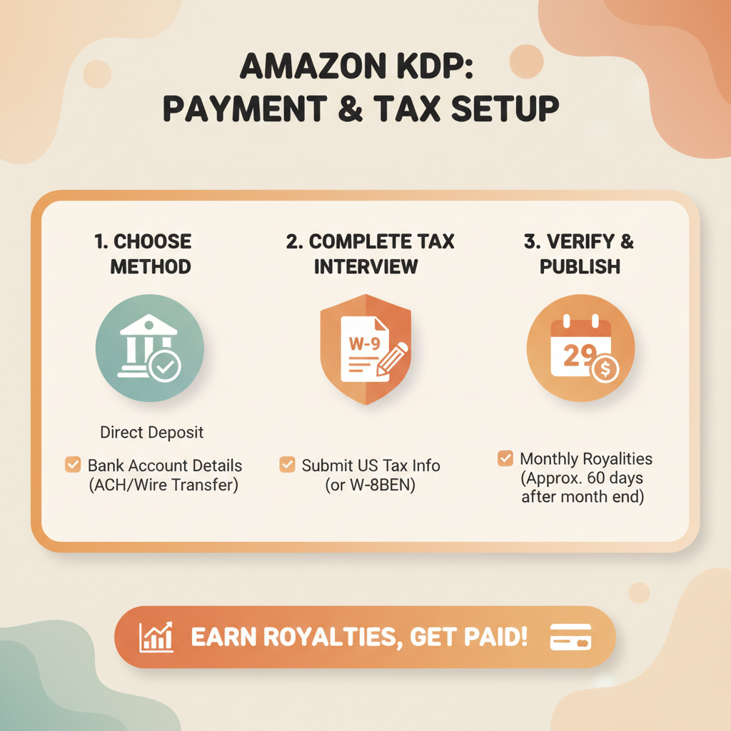 Getting paid reliably starts with entering accurate payment details in your KDP account. Small mistakes here cause most payout delays, so take a few extra minutes to verify every field.