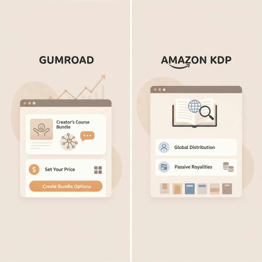 Gumroad vs Amazon KDP is often not an either/or choice. The right path depends on your goals: control and flexibility (Gumroad) versus marketplace reach and discoverability (KDP). Many creators use both to good effect.